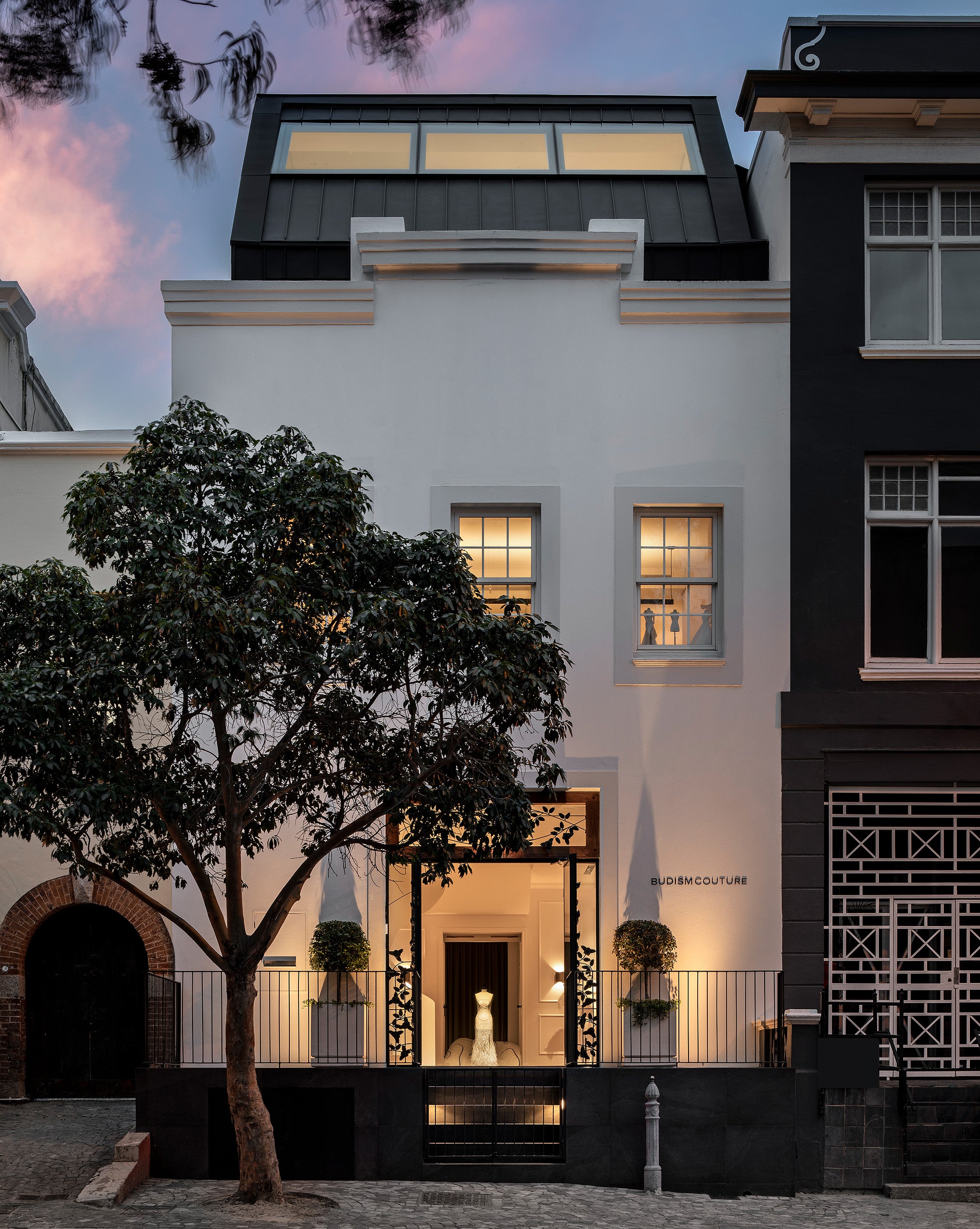 The Maison BUDISM COUTURE is the architectural manifestation of the brand’s ethos and vision. The building is located at 88 Bree Street, in the heart of Cape Town’s CBD, and is part of Heritage Square, the historically most significant oldest city block remaining with the oldest surviving grape vine in the southern hemisphere, estimated to have been planted in the 1770s.