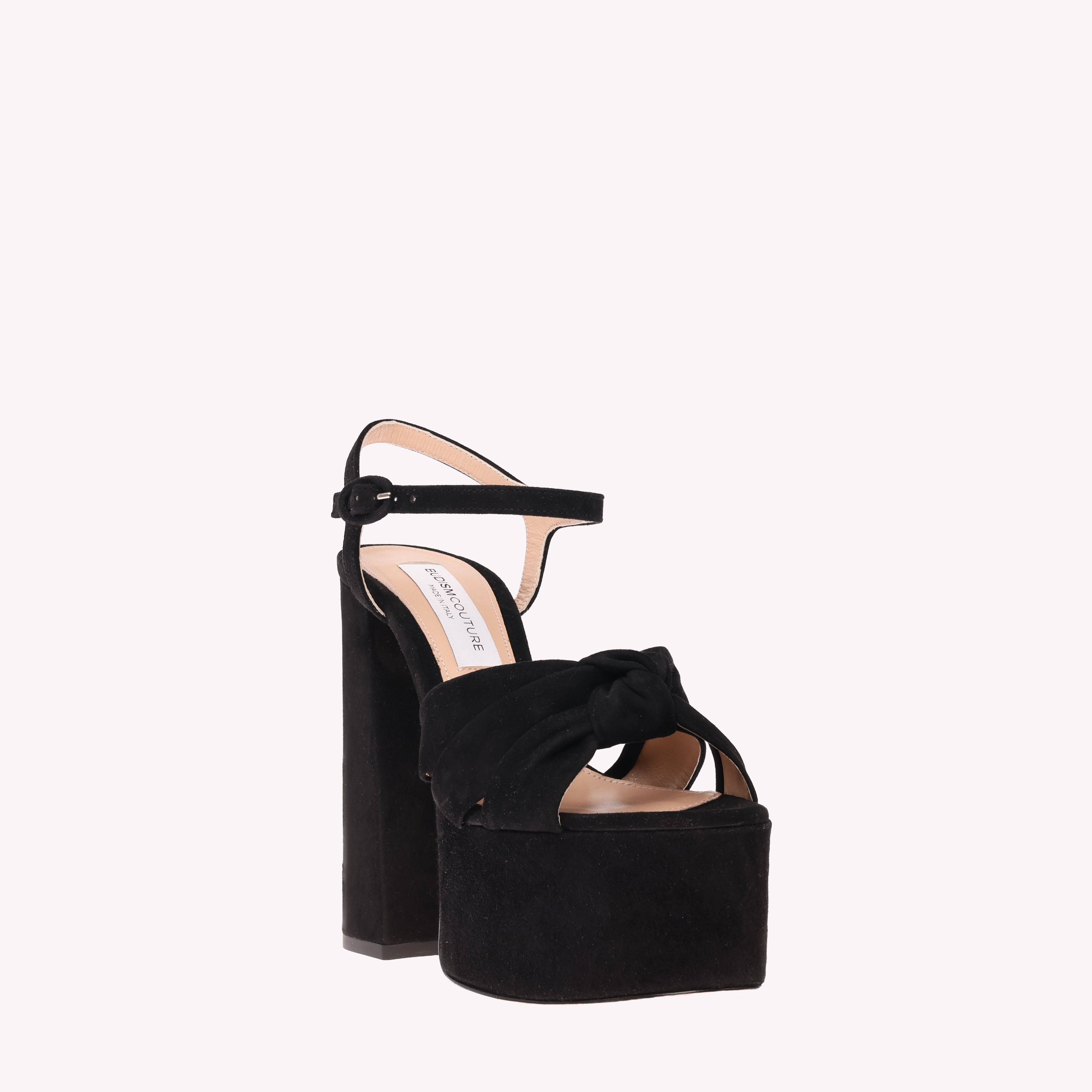 The elegant black suede, paired with a knotted front detail, adds a glamorous touch to any outfit.